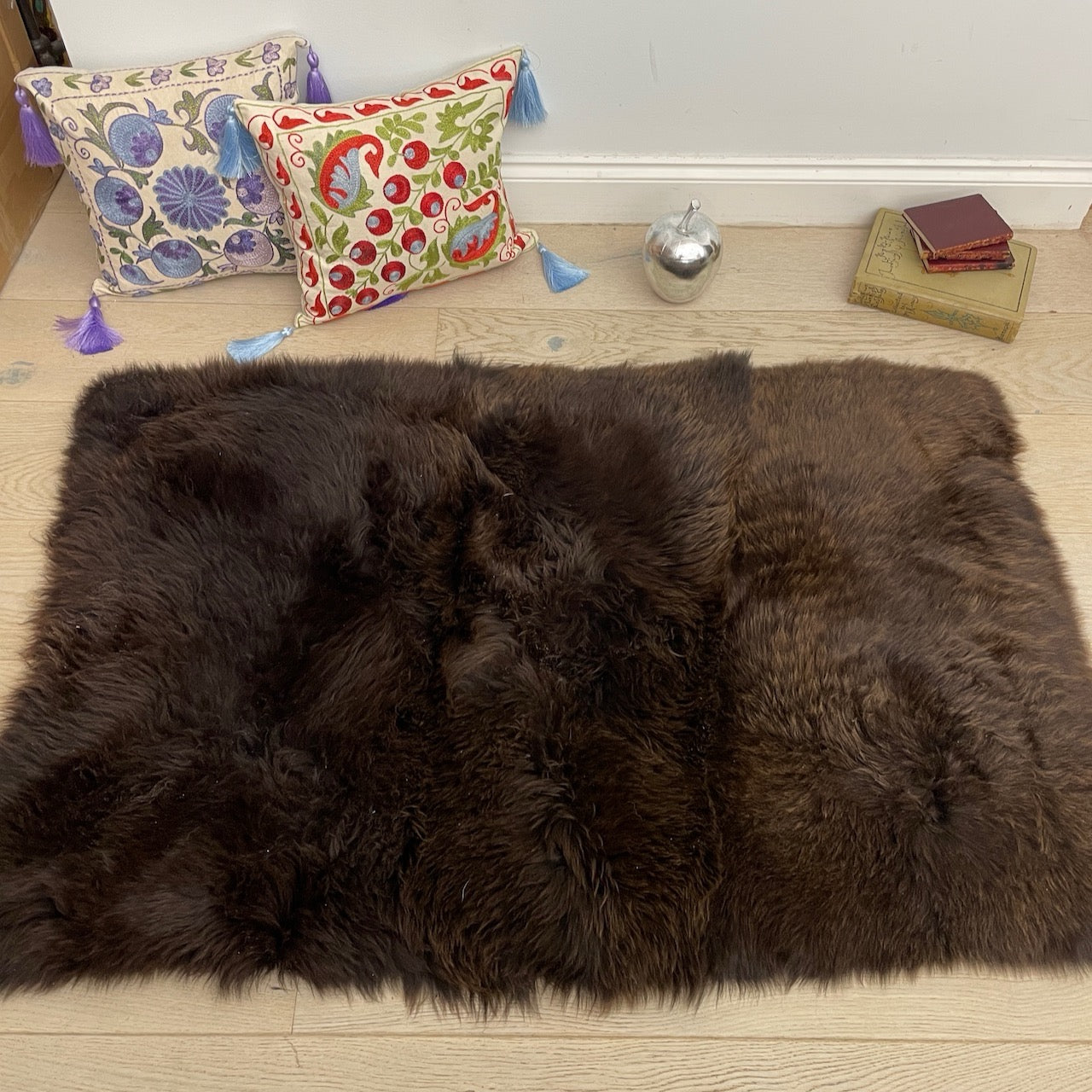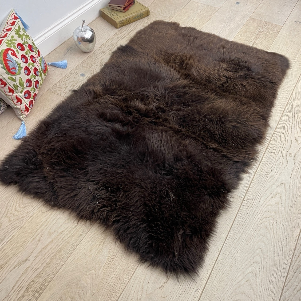 Our wonderful brown fur sheepskin rug is just perfect to add warmth particularly to contemporary living spaces but also works well in a traditional setting.