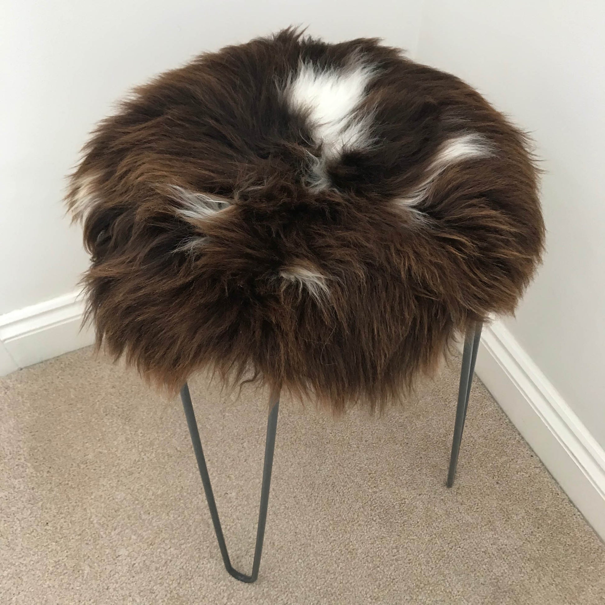 British Sheepskin Roundie Natural Brown with White Cream Ivory Feature ::: Seat Cover 35cm