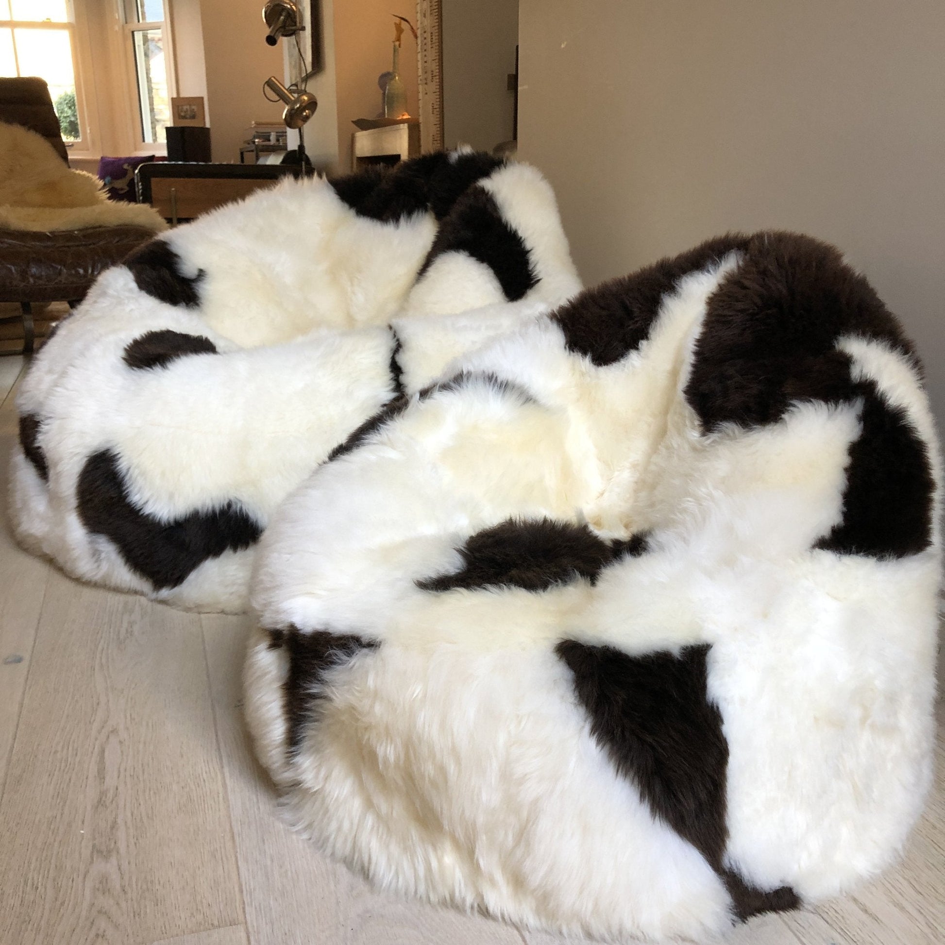 Sheepskin Beanbag Chair 100% Natural British White & Brown Spotted Bean Bag
