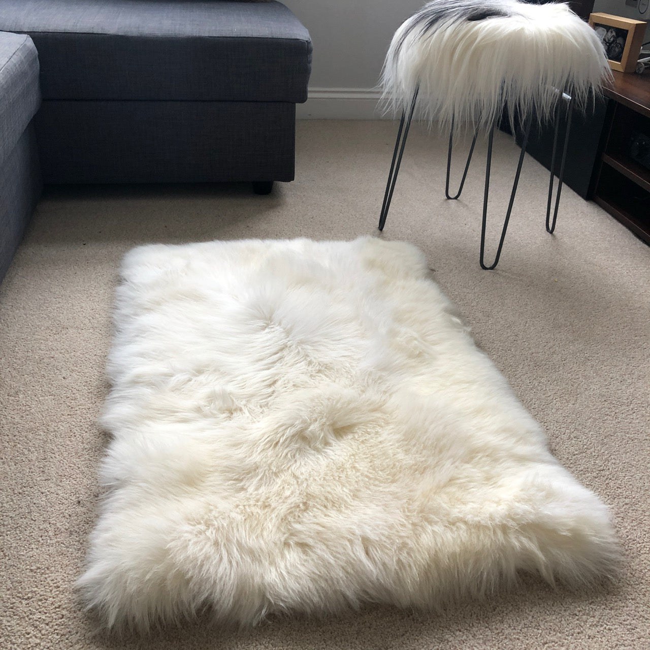 Soft British Sheepskin Rug Ivory Cream White Straight Edges Rectangular 55cm x 85cm